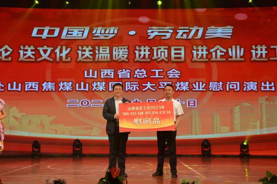 慰問演出活動現場,大平煤業經理李勇致歡迎詞,對各級工會對大平煤業的關心和支持表示衷心感謝,并表示將繼續堅持“以人為本、關愛職工”的理念,依法維護職工合法權益,持續開展“送溫暖”工程,進一步激發廣大職工群眾的工作熱情,為山西焦煤加速建設世界一流煉焦煤企業貢獻力量。山西省煤礦工會副主席王建國、山西省總宣教部副部長李曉萍分別進行了講話,勉勵大家要大力弘揚勞模精神、勞動精神、工匠精神。隨后,山西省總工會黨組成員、副主席李忠貴頒發了慰問品,鼓勵煤礦職工用飽滿的精神,繼續推動高質量發展。長治市總工會黨組書記、常務副主席劉忠,襄垣縣人大常委會副主任、縣總工會主席薛智敏,縣總工會黨組書記、常務副主席連慧清等領導同大平煤業職工600余人共同觀看了演出。