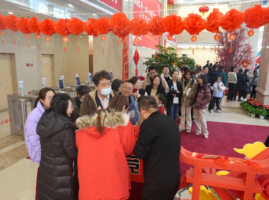 在辦公樓大廳一側,懸掛著五彩斑斕的一串串燈謎,吸引著眾多干部員工駐足競猜,有的眉頭緊鎖,陷入深思;有的豁然開朗,喜形于色;有的興奮地與同伴分享猜中的喜悅,構成了一幅歡樂祥和的猜謎畫卷。